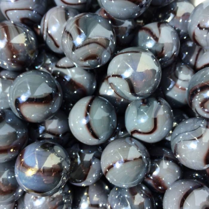 Bloc translucide gris argenté avec des rayures noires. Ces billes sont finies avec un éclat nacré.