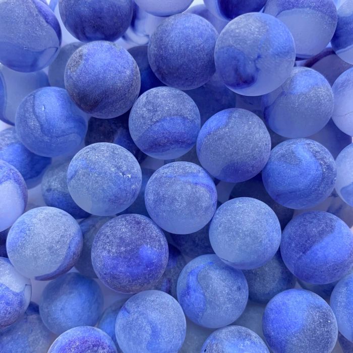 Bille transparente avec une tache bleue. Les billes ont une finition mate. Cette bille est également disponible dans d'autres couleurs et tailles.