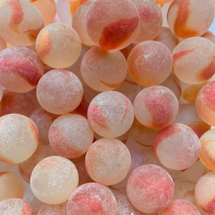 Marbre translucide avec une tache rouge. Les billes ont une finition mate. Ce marbre est également disponible dans d'autres couleurs et tailles.