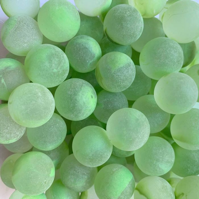 Bille transparente avec une tache verte. Les billes ont une finition mate. Cette bille est également disponible dans d'autres couleurs et tailles.