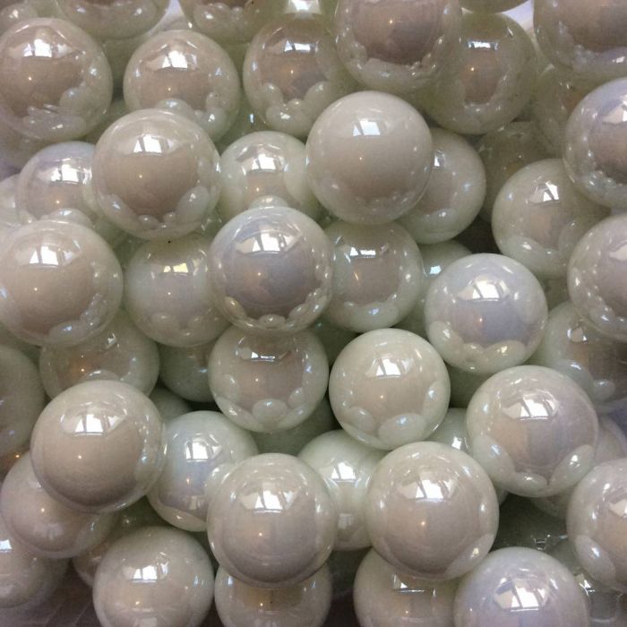 La perle blanche est une bille blanche opaque finie avec un revêtement nacré. Ce revêtement apporte une brillance supplémentaire.