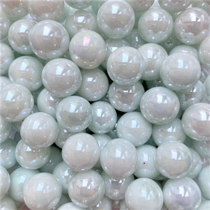 La perle blanche est une bille blanche opaque. Les billes de perle sont finies avec un revêtement nacré qui leur donne un brillant supplémentaire.