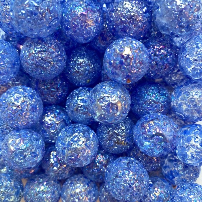 Bille transparente finie avec des éclats de verre bleu.