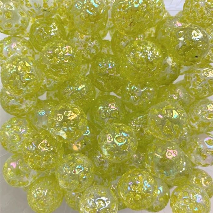 Bille transparente finie avec des éclats de verre jaune fluo.