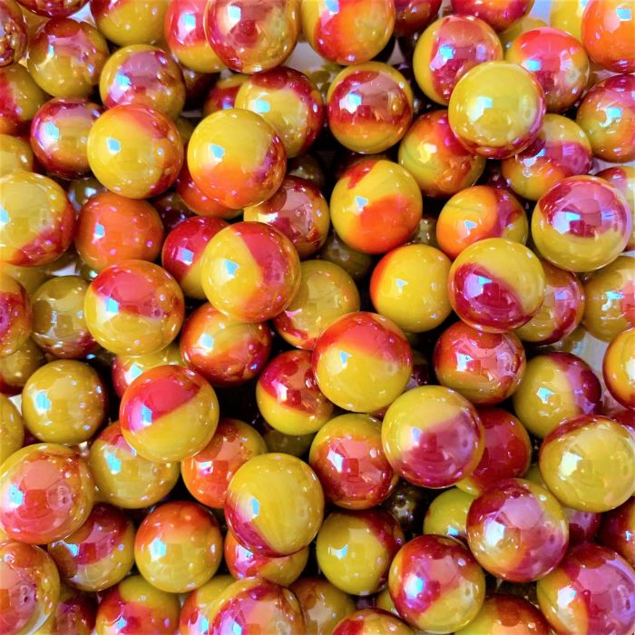 Le soleil est une bille jaune opaque avec une tache rouge à sa surface. Ces petites billes sont finies avec une belle nacre irisée.